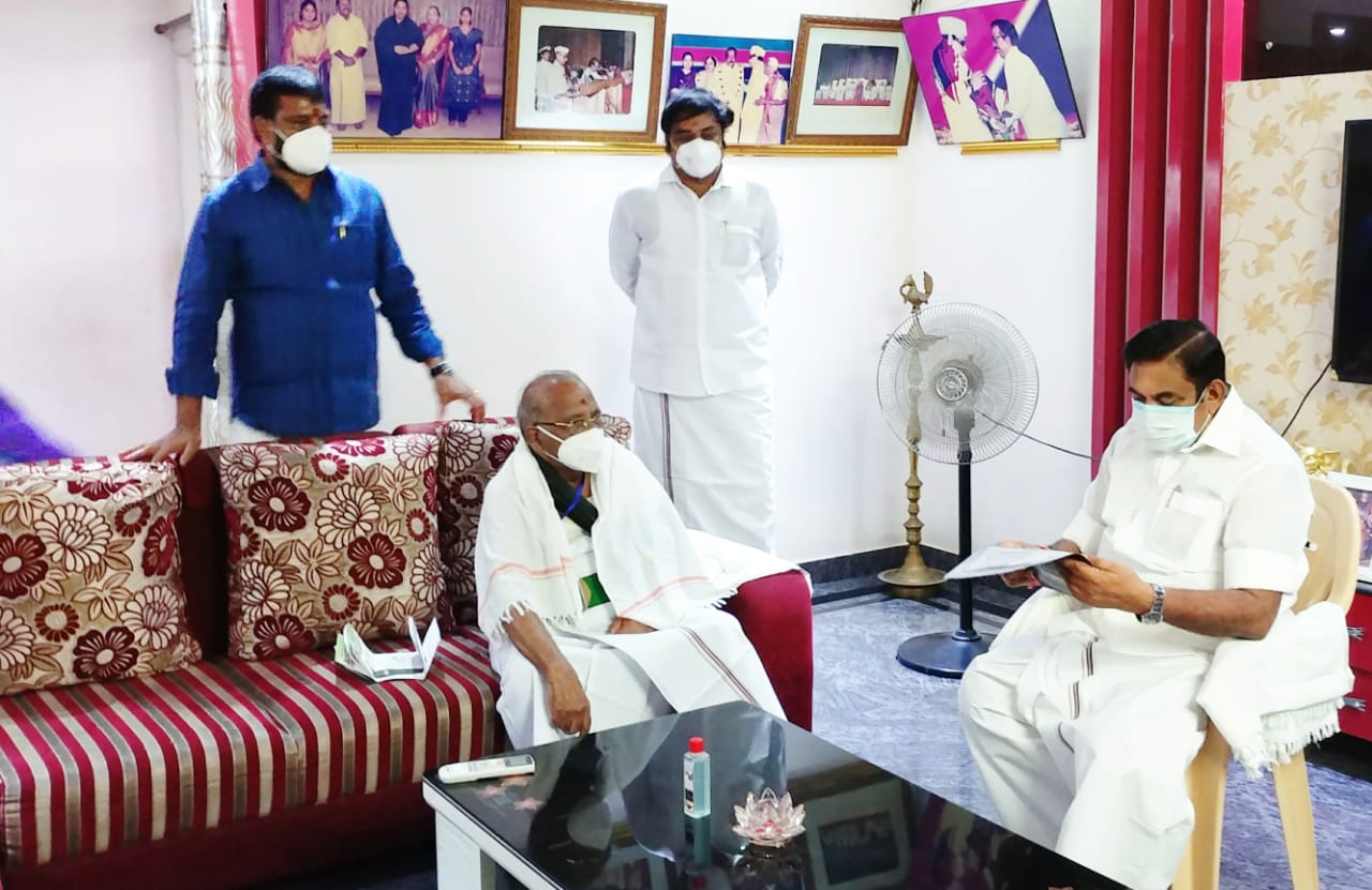 அதிமுக அவைத்தலைவர் மதுசூதனன் கடந்த இரண்டு வாரங்களுக்கு முன்பு நடைப்பயிற்சியின் போது தவறி விழுந்ததின் காரணமாக அவருக்கு இடது கையில் காயம் ஏற்பட்டு மருத்துவமனையில் அனுமதிக்கப்பட்டு சிகிச்சை பெற்று வந்தார் ,தற்போது வீடு திரும்பிய அவரை தமிழக முதல்வர் எடப்பாடி பழனிச்சாமி சென்னை பழைய வண்ணாரப்பேட்டை பகுதியில் உள்ள அவரது இல்லத்தில் நேரில் சந்தித்து உடல் நலம் குறித்து கேட்டறிந்தார்.