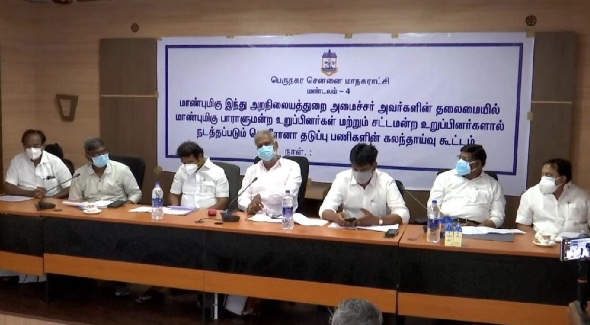 தண்டையார் பேட்டை மண்டலத்தில் கொரொனொ தடுப்பு பணிகள் கலந்தாய்வு கூட்டம் நடைபெற்றது