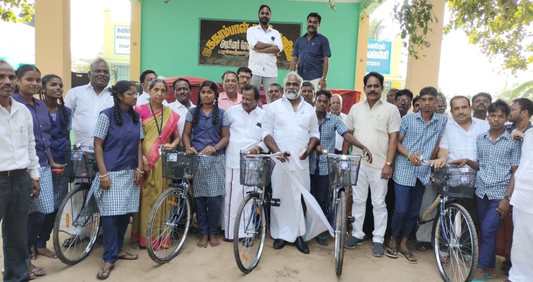 திருவள்ளூர் செப்.21- பொன்னேரி அடுத்த பழவேற்காடு ஜகதம்பாள் சுப்பிரமணியம் அரசு மேல்நிலைப் பள்ளியில் பனிரெண்டாம் வகுப்பு கல்வி பயிலும் மாணவர்களுக்கு தமிழக அரசின் விலையில்லா மிதிவண்டிகள் வழங்கும் விழா பள்ளியின் வளாகத்தில் நடைபெற்றது, இவ்விழாவிற்கு மீஞ்சூர் ஒன்றிய பெருந்தலைவர் அத்திப்பட்டு ஜி.ரவி,பள்ளியின் தலைமை ஆசிரியர் விஜயம் உள்ளிட்டவர்கள் தலைமை வகித்தனர்,உதவி தலைமை ஆசிரியர் அகத்தியன், பெற்றோர் ஆசிரியர் கழகத் தலைவர் ரவி, பழவை அலவி, கன்னிமுத்து, ஜெயராமன், உள்ளிட்டவர்கள் முன்னிலை வகித்தனர், இதில் சிறப்பு அழைப்பாளராக பொன்னேரி தொகுதி காங்கிரஸ் சட்டமன்ற உறுப்பினர் வழக்கறிஞர் துரை சந்திரசேகர் கலந்து கொண்டு அப்பள்ளியில் கல்வி பயிலும் 163 மாணவ,மாணவிகளுக்கு, தமிழக அரசின் விலையில்லா மிதிவண்டிகளை வழங்கினார்,