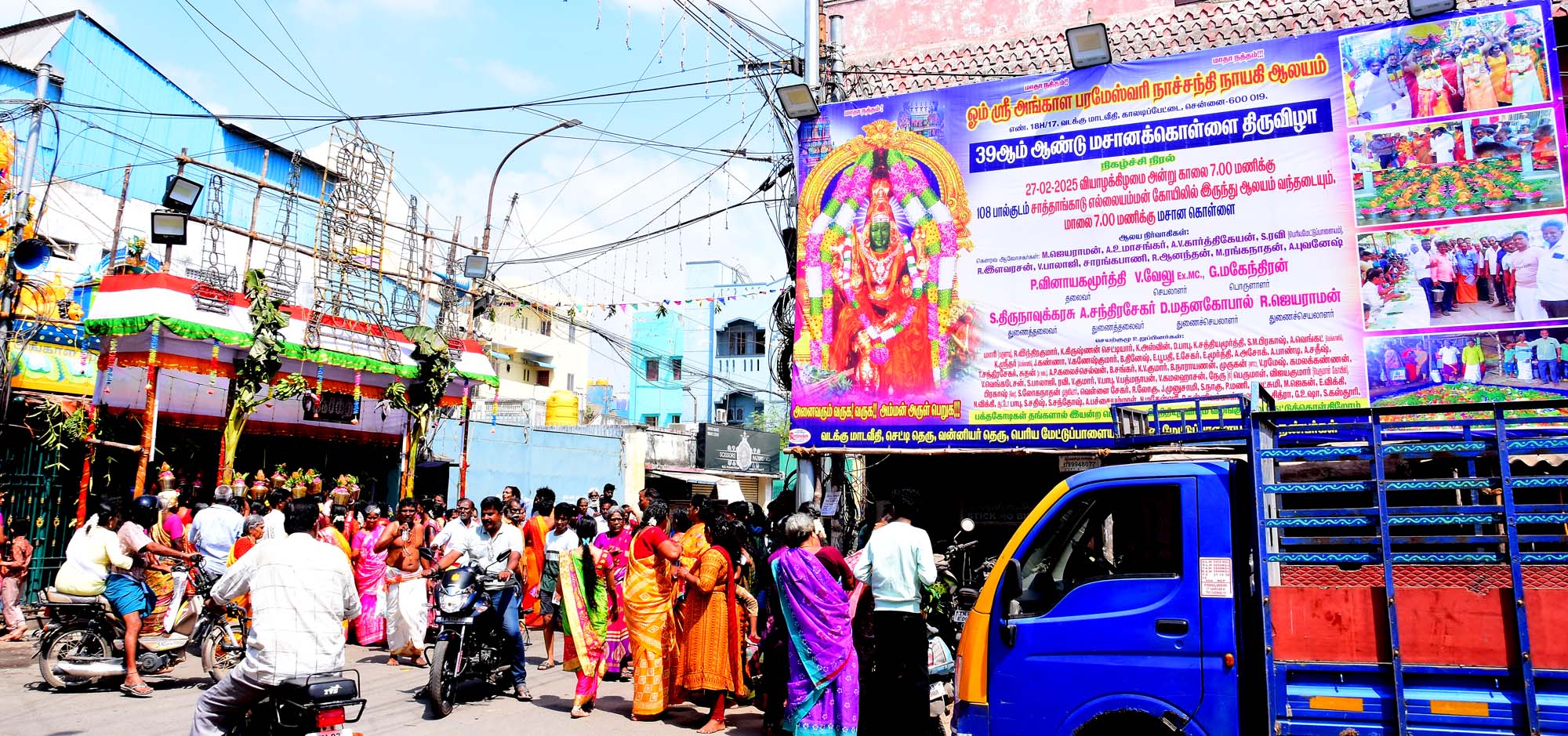 அருள் மிகு ஓம் ஸ்ரீ அங்காள பரமேஸ்வரி நாச்சந்தி நாயகி ஆலயம் . வடக்கு மாட வீதி காலடிப்பேட்டையில் அமைந்துள்ள இந்த ஆலயத்தில் 39 ஆம் ஆண்டு மசான கொள்ளை திருவிழா 27.2.2025 வியாழக்கிழமை அன்று காலை 8 மணிக்கு பால் குடத்துடன் தொடங்கியது அருள்மிகு சாத்தாங்காடு ஸ்ரீ எல்லையம்மன் ஆலயத்தில் இருந்து புறப்பட்டு108 பால்குடத்துடன் பக்தர்கள் வீதி உலா வந்தனர். இதில் ஏராளமான பக்தர்கள் கலந்து கொண்டனர். அன்று மாலை 7 மணிக்கு மசான கொள்ளை திருவிழா ஏராளமான ஊர் பொதுமக்கள் மற்றும் ஏராளமான பக்தர்கள் சிறப்பு அழைப்பாளர்கள் அனைவரும் கலந்து கொண்டனர். சிறப்பு அழைப்பாளர்களாக மண்டல குழு தலைவர் தி. மு.தனியரசு. பகுதி துணை எம்.வி.குமார் Ex Mc ஆகியோர் கலந்து கொண்டனர்.இந்த திருவிழாவை V.வேலு.Ex Mc. நம்ம விநாயகம் மற்றும் மகேந்திரன் EB சிறப்பாக நடத்தினார்கள். அன்று காலை முதல் மாலை வரை சிறப்பு அன்னதானம் வழங்கப்பட்டது.