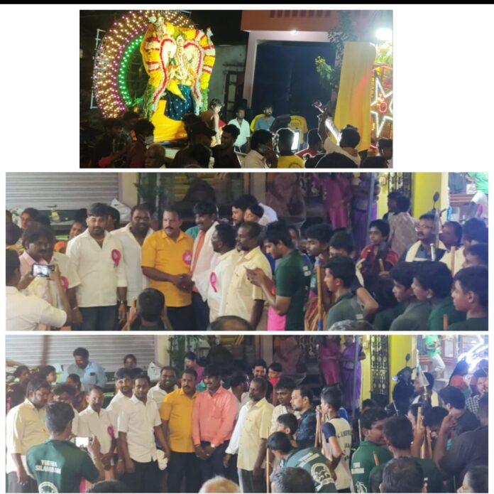 அருள் மிகு ஶ்ரீ சிவசக்தி விநாயகர் ஆலயத்தின் விநாயகர் சதுர்த்தியை முன்னிட்டு சாமி வீதி உலாவில் சிலம்பம் பயிற்சியாளர் சண்முகம் அவர்களின் தலைமையில் மாணவ மாணவிகள் நிகழ்த்திய சிலம்பம் நிகழ்ச்சியில் கலந்து மாணவ மாணவிகளுக்கு வாழ்த்து தெரிவித்து T.P.பாலசுந்தரம் விளையாட்டு மேம்பாட்டு அணி மாவட்ட துணை அமைப்பாளர் நினைவுபரிசு வழங்கினார்.