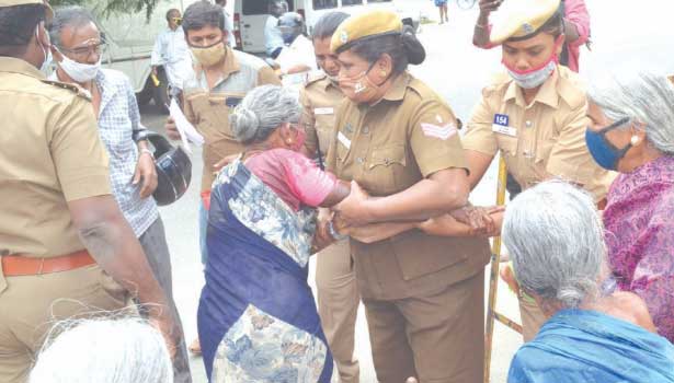 இது குறித்து கலெக்டர் அலுவலகத்தில் இருந்த அன்னூர் தாசில்தார் சந்திராவுக்கு தகவல் கிடைத்தது. அவர் அங்கு குளிரில் நடுங்கியபடி நின்ற மூதாட்டிகளிடம் வந்து பேச்சுவார்த்தை நடத்தினார். அன்னூர் தாசில்தார் அலுவலகம் வாருங்கள். அங்கு வைத்து பிரச்சனையை ஆராய்ந்து தீர்த்து வைக்கிறேன் என்று உறுதியளித்தார்