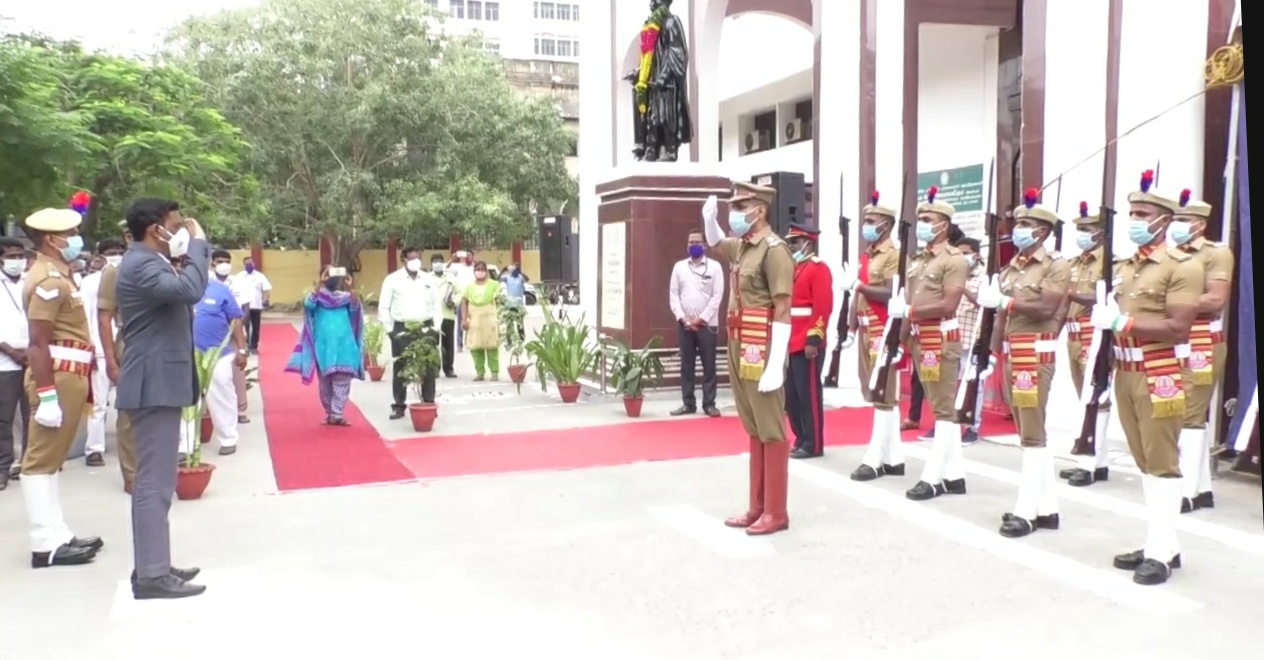 சென்னை மாவட்ட ஆட்சியாளர் அலுவலகத்தில் மாவட்ட வருவாய் அலுவலர் காளிதாஸ் காவலர் அணிவகுப்பை பார்வையிட்டார் பின்னர் தேசியக் கொடியை ஏற்றி மரியாதை செலுத்தினார் அவருடன் அரசு அலுவலர்கள் பலரும் கலந்து கொண்டனர் மேலும் சென்னையில் கொரோனா நோய் தடுப்பு பணியில் ஈடுபட்டு உயிரிழந்த காவலர்கள் நான்கு பேரின் குடும்பத்தினருக்கு முதலமைச்சரின் பொது நிவாரண நிதியிலிருந்து 25 லட்சம் ரூபாய் காசோலையை வழங்கினாரர் மேலும் ஒவ்வொரு மண்டலமாக சிறப்பாக பணியாற்றியவர்களுக்கு சான்றிதழ் கொடுத்து மரியாதை செலுத்தப்பட்டது அதேபோன்று ஒவ்வொரு கிராம நிர்வாக அலுவலர்களும் சான்றிதழ் கொடுத்து மரியாதை செலுத்தப்பட்