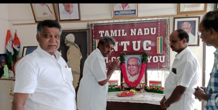 தமிழ்நாடு தேசிய தலைவர் தளபதி ஜி காளன் எம்எல்ஏ(Ex)அவர்களின் 87 வது பிறந்தநாள் விழா இன்று தமிழ்நாடு முழுவதும் சிறப்பாக கொண்டாடப்பட்டது சென்னை துறைமுகத்தில் இன்று காலை 6 மணி அளவில் படத்திற்கு மாலை அணிவித்து தொழிலாளர்களுக்கு இனிப்பு வழங்கப்பட்டது 11 மணியளவில் தமிழ்நாடு ஐ என் டி யு சி தலைமை அலுவலகம் ஜி ஆர் பவனில் திரு ஜி காளன் அவர்களின் படத்திற்கு செகரட்டரி ஜெனரல் திரு எம் பன்னீர்செல்வம் அவர்களும் தமிழ்நாடு ஐ என் டி யு சி டிரஸ்ட் சேர்மன் திரு வி சி முனுசாமி மற்றும் ஐ என் டி யு சி நிர்வாகிகளும் மலர் தூவி மரியாதை செலுத்தினர் பகல் 12.30 மணியளவில் வண்ணாரப்பேட்டையில் உள்ள வரதப்பா நாயுடு ஆதரவற்ற குழந்தைகள் இல்லத்தில் பகல் உணவு வழங்கப்பட்டது இந்த நிகழ்ச்சியில் தமிழ்நாடு ஐ என் டி யு சி தலைவர் சேர்மன் திரு வி சி முனுசாமி அவர்களும் திருவள்ளூர் மாவட்ட ஐஎன்டியூசி தலைவர் திரு ஜெயபால், துறைமுக ஐ என் டி யு சி தலைவர் திரு ஜி ஜாமி வரதன் ராவ், பொதுச் செயலாளர் திரு சி ரவி, பொருளாளர் திரு ஆர் மூர்த்தி, செயலாளர் திரு எஸ் தனசேகர் சென்னை மாவட்ட வடக்கு தலைவர் திரு சே சார்லஸ்,LPF தொழிற்சங்க செயலாளர் திரு அமல் சிங், தமிழ்நாடு காங்கிரஸ் பெரம்பூர் தொகுதி தலைவர் திரு கணபதி, ஜெயம் சேவை மைய துணை தலைவர் திரு எம் குப்புசாமி,சென்னை மாவட்ட ஐ என் டி யூ சி இளைஞர் அணி தலைவர் திரு கே பி மோகன்ராஜ் மற்றும் சென்னை துறைமுக ஐ என் டி யு சி சங்கத்தின் மூத்த துணைத் தலைவர் திரு ஆர் செல்வம், துணைப் பொதுச் செயலாளர் திரு எ நடராஜன், திரு முத்துராமலிங்கம், திரு ரவிச்சந்திரன் திரு கண்ணன்,காங்கிரஸ் பேரியக்க மூத்த தலைவர் திரு கே குமாரசாமி,திரு ராஜாராம் மற்றும் முக்கிய தலைவர்கள் காங்கிரஸ் பேரியக்க நிர்வாகிகள் ஐ என் டி யு சி சங்கத்தின் தலைவர்கள் கலந்து கொண்டு விழாவை சிறப்பித்தனர்…
