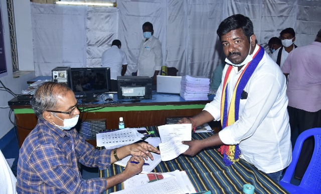 தமிழ்நாடு திருவொற்றியூரில் பாமக சார்பாக 5வது வார்டில் வேட்பு மனு: By admin - February 6, 2022 0 223 Share Facebook Twitter Google+ Pinterest WhatsApp திருவொற்றியூரில் பாமக சார்பாக 5வது வார்டில் நகர்ப்புற தேர்தலில் போட்டியிடும் திருமலை உதவி தேர்தல் நடத்தும் அலுவலர் பாஸ்கரன் இடம் வேட்பு மனுவை தாக்கல்