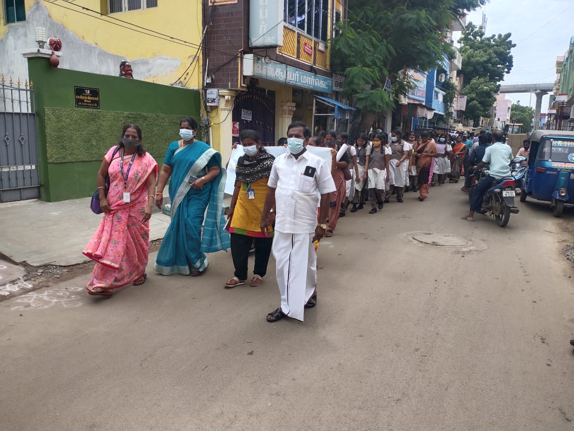 1. வார்டு 09 இன்று 13.07.2022 *தூய்மை நகருக்கான விழிப்புணர்வு நிகழ்ச்சி* சத்திய சாய் மேல் நிலை பள்ளியில் விழிப்புணர்வு மற்றும் பேரணி, மாமன்ற குழு உறுப்பினர் தலைமையில் நடைபெற்றது. இதனை தூய்மை இந்திய திட்டதில் உள்ள பரப்புறையாளர் ஒருங்கிணைத்து செயற்பொறியாளர், தூப்புரவு அலுவலர், சுகாதார அலுவலர், ராம்கி நிறுவன அலுவலர் கலந்து கொண்டனர்