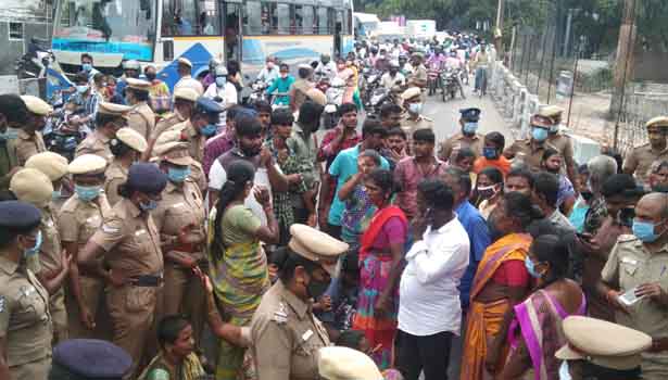 தற்போது எங்கள் தரப்பிலும் கோர்ட்டை அணுக உள்ளோம். அதுவரை நிலத்தை அளவீடு செய்ய கூடாது. குடியிருப்புகளை அகற்றவும் கூடாது என்று கோரிக்கை வைத்தார். முன்னதாக சாலை மறியலின் போது போலீசாருக்கும் மறியலில் ஈடுபட்டவர்களுக்கும் இடையே தள்ளுமுள்ளு-வாக்குவாதம் ஏற்பட்டது. இதனால் அங்கு பரபரப்பு ஏற்பட்டது.