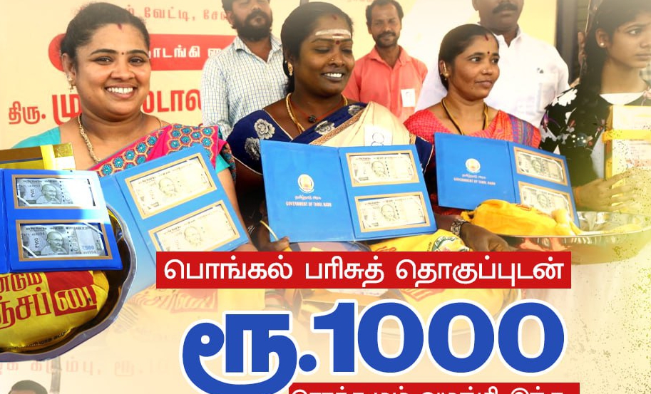 கடந்த சில ஆண்டுகளாக பொங்கல் தொகுப்புடன் ரொக்கப்பணம் ரூ.1000 வழங்கப்பட்டு வருகிறது. இந்த ஆண்டு பொங்கல் தொகுப்பான பச்சரிசி, சர்க்கரை, முழுக் கரும்பு ஆகியவற்றுடன் ரொக்கம் ரூ.1000 வழங்கப்படும் என்று முதலமைச்சர் மு.க. ஸ்டாலின் அறிவித்தார்.