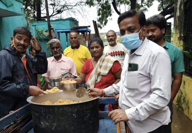மழையால் பாதிக்கப்பட்ட 13 வது வட்டம் காந்தி நகர் 2 வது தெரு,3வது தெரு 4 வது தெரு தண்ணீரில் மிதக்கும் வீடுகளில் வசிக்கும் மக்களுக்கு நேரில் சென்று மதிய உணவு வழங்கிய தருணம்.