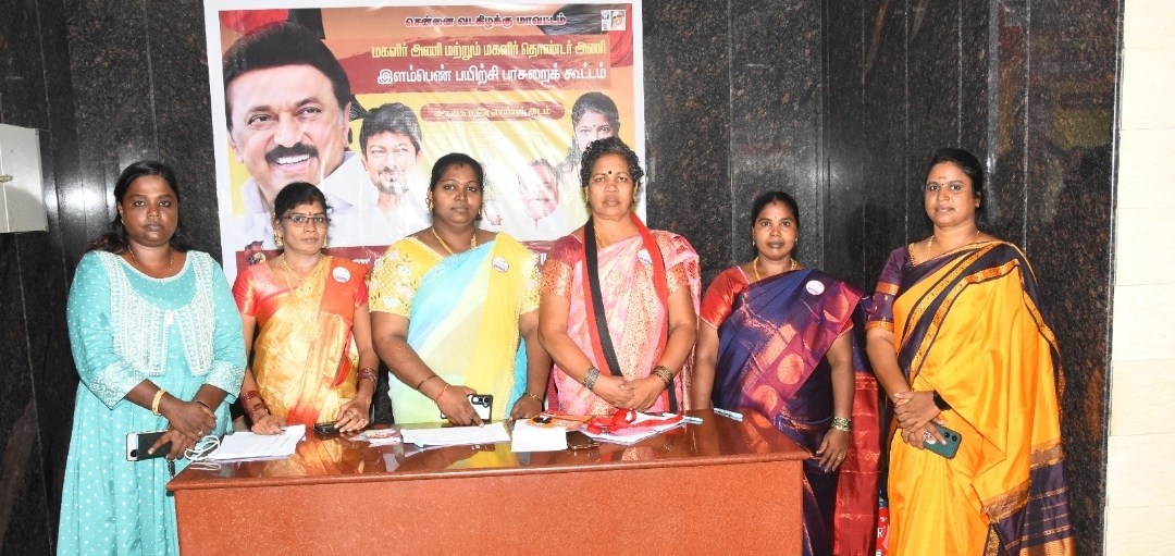 மற்றும் மாவட்ட கழக செயலாளர் மாதவரம் எஸ்.சுதர்சனம் MLA அவர்கள் ஏற்பாட்டில், கூட்டத்தில் கலந்து கொண்ட இளம் பெண் பயிற்சி பாசறையில் உள்ள அனைத்து மகளிர்களுக்கும் சிறப்பு பரிசு தொகுப்புடன் அறுசுவை உணவு வழங்கப்பட்டது. : இந்த நிகழ்ச்சியில் வடசென்னை நாடாளுமன்ற உறுப்பினர் டாக்டர் கலாநிதி வீராசாமி MP .தி.மு.க மகளிர் அணி இணை செயலாளர் குமரி விஜயகுமார். திருவொற்றியூர் சட்டமன்ற உறுப்பினர் கே.பி.சங்கர் MLA, திராவிடர் கழக துணை பொது செயலாளர் மதிவதனி, கழக செய்தி தொடர்பு துணை செயலாளர் கிருஷ்ணமூர்த்தி, மகளிர் அணி சமூக வலைத்தள பொறுப்பாளர் யாழினி. மற்றும் M. கோமல வள்ளி-மாவட்ட மகளிர் அணி அமைப்பாளர் . M .அம்மு- மாவட்ட மகளிர் தொண்டர் அணி அமைப்பாளர் ஆகியோரின் முன்னிலையில் நிகழ்ச்சி நடைபெற்றது.