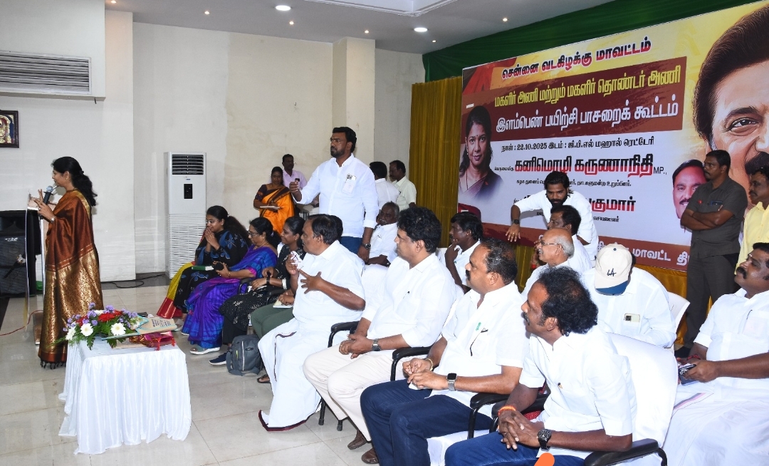 இளம்பெண் பயிற்சி பாசறை கூட்டம் சென்னை வடகிழக்கு மாவட்ட மகளிர் அணி மற்றும் மகளிர் தொண்டர் அணி சார்பில் 22-10-2025 காலை 10மணியளவில் இளம் பெண்கள் பயிற்சி பாசறை கூட்டம், சென்னை ரெட்டேரி லட்சுமிபுரம் GPL பேலஸில் நடைப்பெற்றது.