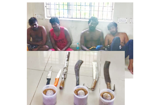 உடனடியாக அவர்களை கைது செய்து காவல் நிலையம் அழைத்து வந்து போலீசார் விசாரணை மேற்கொண்டதில் கும்மிடிப்பூண்டியில் உள்ள பிரபல ரவுடியை கொலை செய்ய திட்டம் தீட்டி அனைத்தையும் தயார் செய்து வைத்து சென்று கொண்டிருப்பதாக தெரிவித்துள்ளனர்