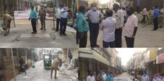 பள்ளிப்பட்டு பஜார் வீதி சவுக்கு கட்டைகளால் அனைத்து வழிகளும் அடைக்கப்பட்டது!