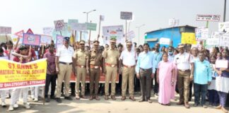 மீஞ்சூரில் சாலை பாதுகாப்பு உயிர் பாதுகாப்பு விழிப்புணர்வு பேரணி;
