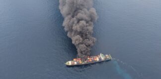 கேரளாவில் நடுக்கடலில் பற்றி எரியும் கப்பல்;